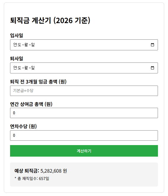 퇴직금 계산기 (2026 기준)