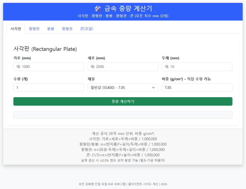 금속 중량 계산기