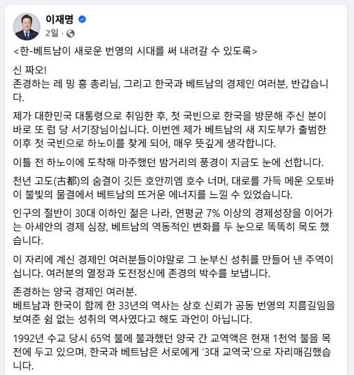한-베트남이 새로운 번영의 시대를 써 내려갈 수 있도록