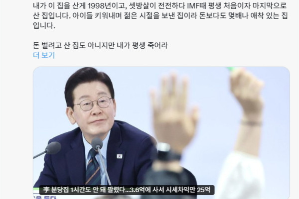 이 기사는 왜 이리 악의적일까요? "시세차익만 25억"이라니. https://x.com/Jaemyung_Lee/status/2027347829640122521
