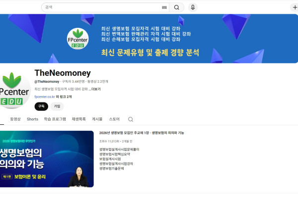 보험 전문교육 추천 유튜브 ( TheNeomoney )https://www.youtube.com/@TheNeomoney