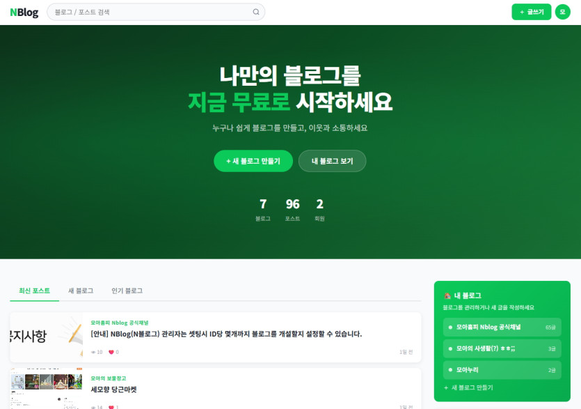 모아 NBlog(N블로그) : 멀티 블로그 서비스 플랫폼 ( nblog_V1.0 ) 런칭