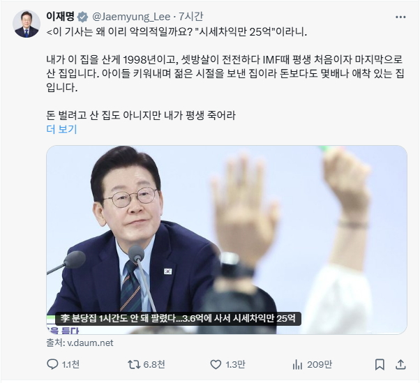 이 기사는 왜 이리 악의적일까요? "시세차익만 25억"이라니.